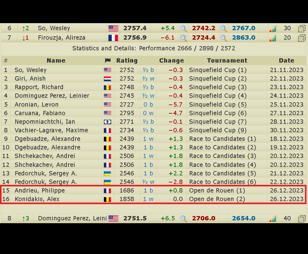 There is no mistake that Alireza Firouzja gained 0.0 (zero) rating points for his second-round win at the Open de Rouen. According to the current FIDE rating rules, all subsequent wins against players rated 2027 or below will bring no benefit to Firouzja.
