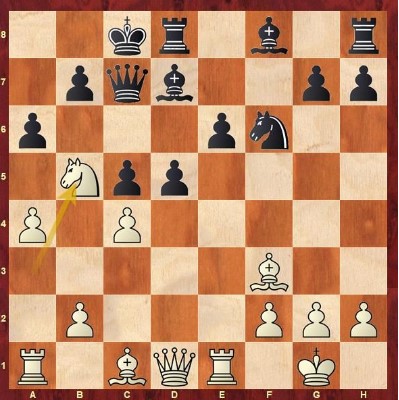 ММ Сиддхарт Джагадиш (SGP, 2508) очень ясно дал понять, к чему он стремится - широко открыть ферзевый фланг и атаковать короля с8. 15.Nb5! если черные возьмут axb5 16.axb5 Qb8 17.b4. Игра продолжилась 15...Qb8 16.b4 axb5 17.axb5 e5 18.b6+ - все быстро развалилось, и белые вскоре выиграли партию. Эта победа принесла Сиддхарту последнюю норму гроссмейстера и он стал пятым гроссмейстером Сингапура.