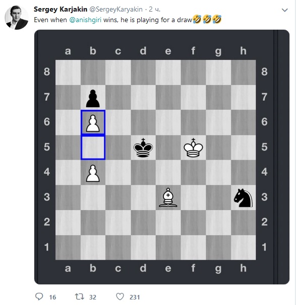 Ахах, Гири и Карякин похоже недолюбливают друг друга) |