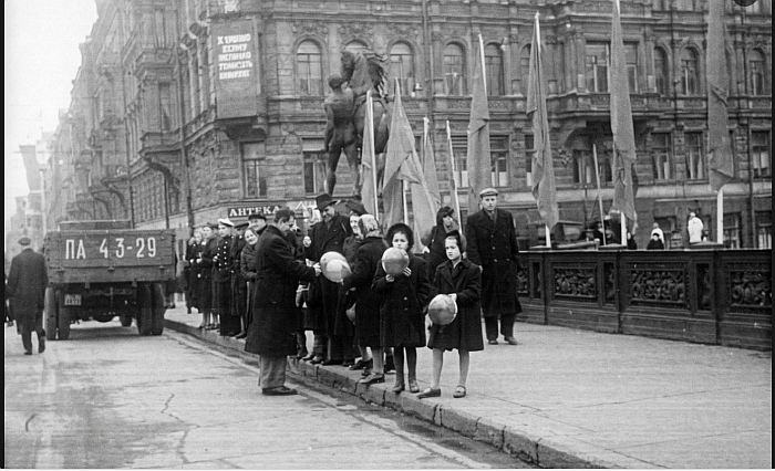 Ленинград, Невский проспект, Аничков мост. 1 мая 1949 года.