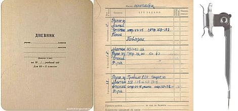 Школьный дневник и циркуль “Козья ножка”