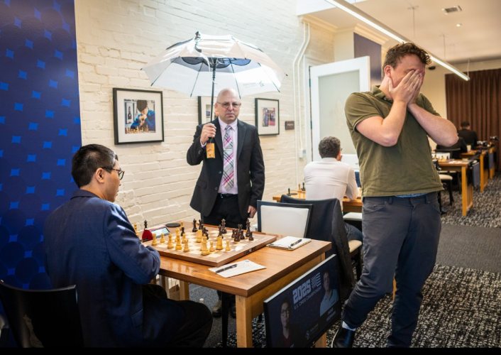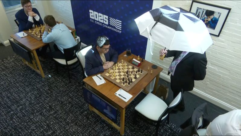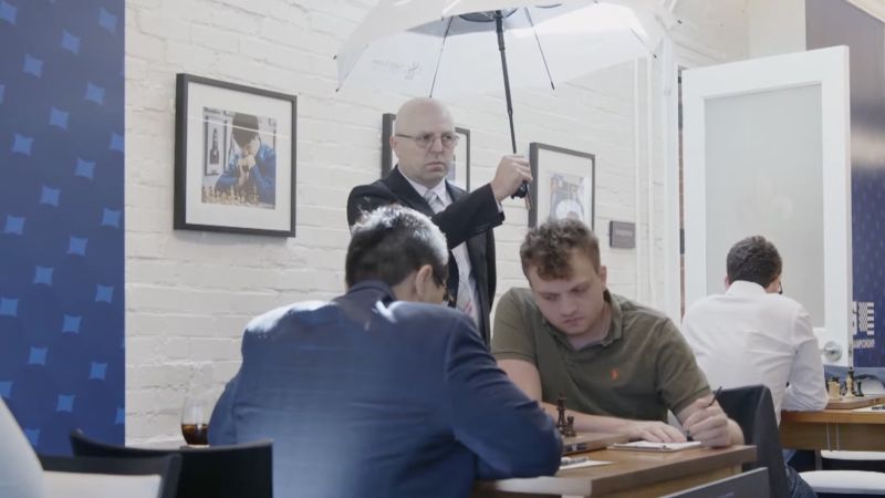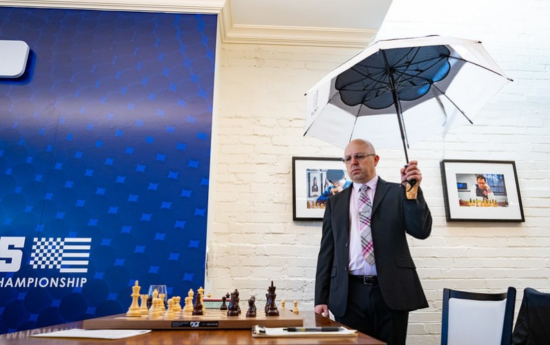 — Конечно. Уэсли даже остановил часы — ведь если партия прерывается, оба игрока получают время подумать. Так что пауза длилась недолго. Это выглядело забавно — такого ведь никто не видел. Прямо как в фильме про британскую королевскую семью, где у короля стоит дворецкий с зонтом. Немного странно, но фото получилось очень забавным. Если показать это человеку, не связанному с шахматами, он, наверное, вообще не поймёт, что происходит и зачем этот зонт.