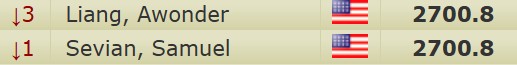 А теперь мой последний вывод — возможно, самый спорный и немного грустный. Раньше я говорил о том, что Кауана, Вудвард и Йип показывают хорошие результаты, а теперь скажу, что все американские игроки, кроме Вудварда и Мишры, достигли своего пика. Для Робсона и Севиана был тяжелый труд — они поднимались с 2680 до примерно 2700, но потом стабилизировались. Вондер Лянг тоже недавно перешагнул 2700 — это большой рубеж, но, к сожалению, кажется, что это последний большой рубеж в их карьере. Они стали сильными игроками, но что дальше? Никто из них, скорее всего, не сыграет в кандидатах и не выиграет чемпионат мира.