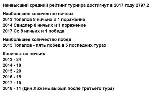 А последний список, количество ничьих - это какое количество ничьих имеется в виду? Если в турнире в целом, то не все из приведенных чисел соответствуют действительности.