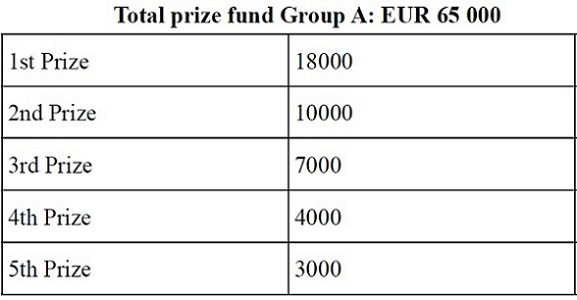 Мы должны распределить призовую сумму в 28000 Евро. Разделим эту сумму на две равные части, каждая по