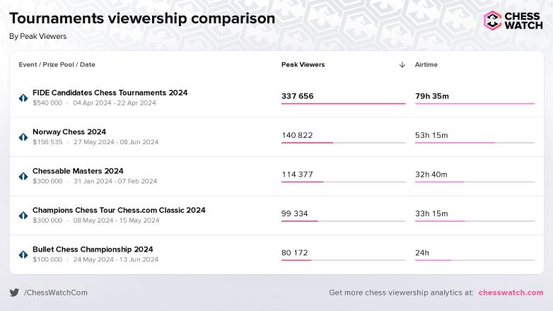 Coming to viewership comparisons, Norway Chess 2024 ended second on the most watched and most popular by PV tables for the year. Leading the charge is the FIDE Candidates Chess Tournaments 2024, which closed as the sport's third-most watched competition of all time and its fifth-most popular one ever.