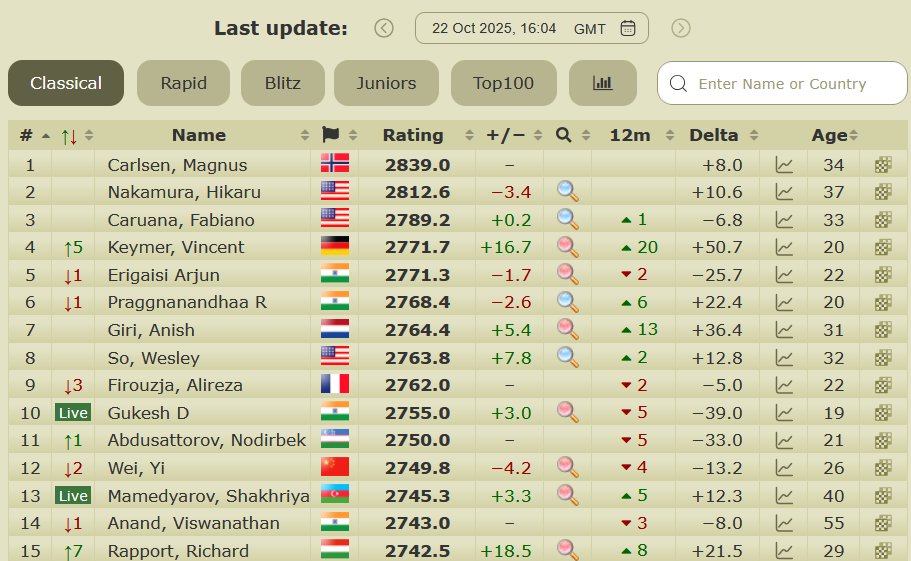 Винсент Каймер (2771.7) стал новым №4 в мире после трёх побед подряд на Кубке европейских клубов 2025, выступая за **Novy Bor**. Сегодня он одержал победу над опытным Борисом Гельфандом.