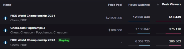 | The FIDE World Championship 2023 has become the second most-watched tournament in the history of chess in terms of viewership, surpassed only by the World Championship 2021. In terms of total view time, the competition lagged behind the FIDE WC 2021 by only 10%, and the peak audience was just 7% lower. An excellent result for a tournament where the great and terrible Magnus Carlsen did not play. |