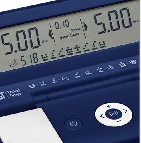 Показывается и номер позиции и расположение фигур. К сожалению такие часы вроде делает только одна фирма DGT и они очень низкого качества. Кнопки переключения очень плохо работают и, похоже, что максимальное время только 5 минут, не могу найти опровергающей это информации.