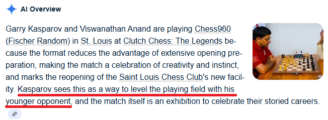 Интересно, почему на открытии обновленного клуба в Сент-Луисе Каспаров с Анандом решили сыграть выставочный матч (из 12 партий!) именно в ШФ? Разве вся их шахматная слава хоть как-то связана с другой игрой?