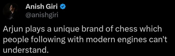 | Пока в этом турнире, несмотря на высокий результат, Эригайси не демонстрирует никакой "чистоты", играет в своём прежнем стиле, напористом, но со многими серьёзными ошибками (который и принёс ему последнее место в Вейке-2023). |