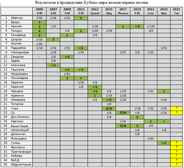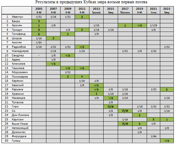В предыдущую таблицу добавил топ-восьмерку Кубка этого года - специально показать, что впервые в первой восьмерке посева сразу пять новых имен.