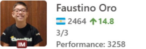 11-летний аргентинский шахматист Фаустино Оро выполнил свою первую норму гроссмейстера. В более юном возрасте это удавалось сделать только Гукешу Доммараджу.