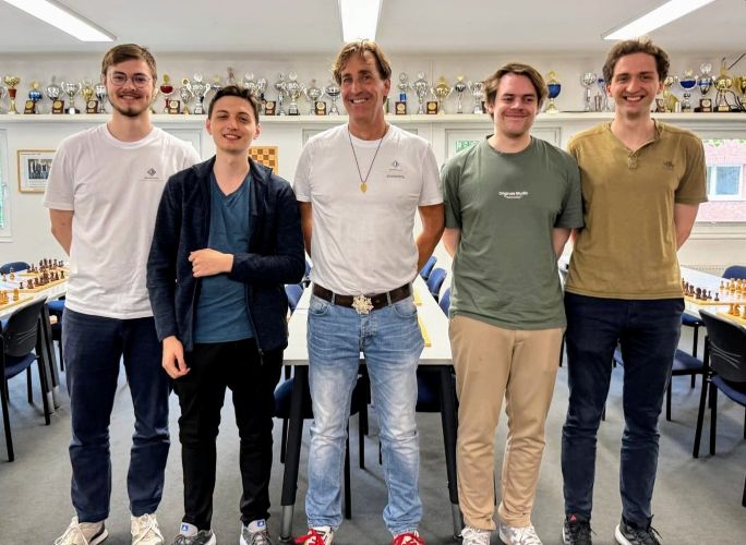 Kurze Pause beim Training der Nationalmannschaft im Vereinsheim des Hamburger Schachklub von 1830 e.V. ♟️Akademiegründer Jan Henric Buettner schaute vorbei, wünschte viel Erfolg bei Olympia 🏅 - und brachte ein Bonbon mit: Nach der Olympiade ist die Mannschaft ins WEISSENHAUS eingeladen