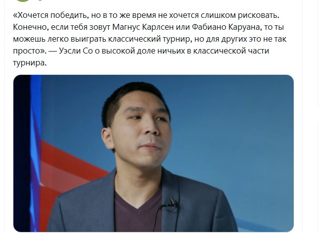 | Сегодня Уэсли обязательно должен победить Фабиано. Ничья его никак не устраивает. |