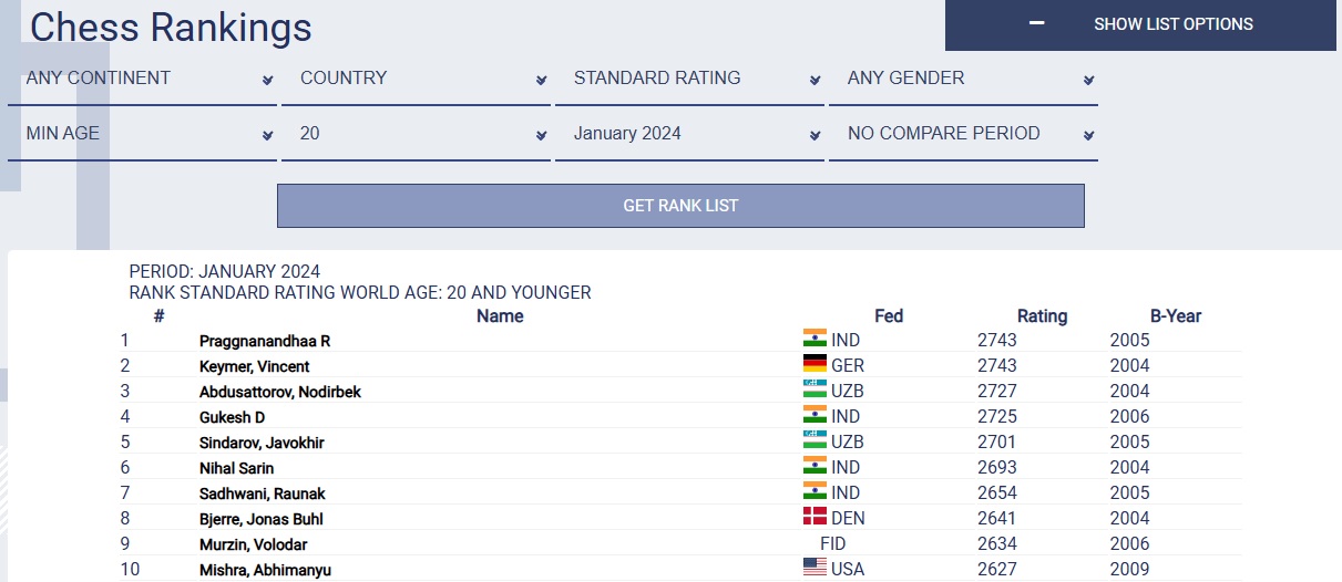 Если он останется без изменений, то, используя текущие январские рейтинг-листы (основной и юниорский) вместо январских листов 2024 года, получим минимальные изменения (цифры для Европы и Африки - те же самые):