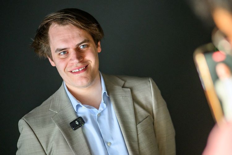 Мне очень повезло, что со мной сегодня немецкий гроссмейстер Matthias Blübaum. Насколько я понимаю, ты единственный человек в истории, который дважды выигрывал чемпионат Европы. Ты здесь, на турнире претендентов. Ты это сделал.