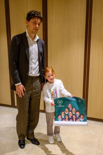 Вероятно, самым молодым «секундантом» на турнире претендентов является Мухиддин Мадаминов! Настоящий сгусток позитивной энергии, Мухиддин всегда в отличном настроении — мы не раз видели это на Кубке мира вместе с Джавахиром Синдаровым. Здесь он подбадривает Бибисару и Синдарова, когда они заходят!