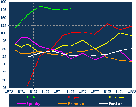 График-динамика для 7-ми лучших мастеров за период 1970-1984.