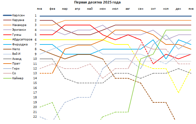 Поскольку Фирузджа играет в "элитном" LCC и Прагг - в "открытом" LCC, в итоговой десятке года (январской) ещё могут быть изменения.