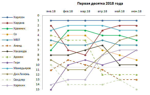 Как можно видеть даже из этой картинки, к седьмому месту в рейтинге Крамнику не привыкать. Однако сам рейтинг значением ниже 2780 не случался у него уже почти три года. Стартовая позиция в гонке рейтингов, начинающейся через полгода, пока что вырисовывается не так чтобы очень.