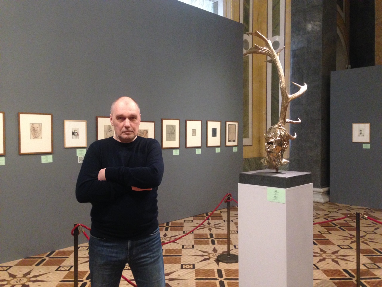 Первая неожиданность: экспозиция рассыпана по разным залам. Идешь, идешь... Кругом какие-нибудь малые голландцы. И вдруг, что-то яркое. Платье из хитинового покрова жуков... Фабр, понятное дело.) На самом деле, выглядит интересно. Однако, некоторые его вещи расположены не совсем удачно. Например, несколько картин из серии "Появление исчезновение" прилепили под самым потолком дворца, над основной экспозицией. Если вблизи этих "картин" я различаю что-то только после подсказки глазастых детишек, то изображение на пятиметровой высоте можно рассмотреть разве только в морской бинокль. Некоторые скандальные экспонаты, типа кошки распятой на кресте, так и не нашел.