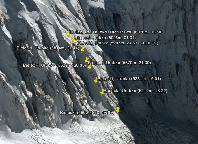это восхождения без всяких сомнений войдет в историю! ибо: ночью! зимой! при таком морозе(за -30 внизу и -40 у цели)! на нанга-парбат! с такой скоростью! такого никогда не было даже близко. даже следящие за восхождением по трекеру адама альпинисты были в ахуе. примерно за 4 часа они по льду поднялись более, чем на 1,2 км (более точные данные, надеюсь, подсчитают, и высекут золтыми цифрами на скалах парбата. пока точно это не сделать-нет точной высоты высадки). на трекере это было так: