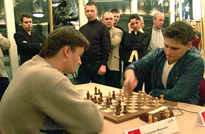 Скорее всего, такой разговор состоится в будущем, но не сейчас. На этот раз Владислав, воодушевленный своей победой и состоявшимся чуть ранее разговором с «chemodan’ом» (о предмете узнаете довольно скоро), взял инициативу в свои руки – и активно «спихивал» беседу (почти монолог) на любимую тему молниеносной игры. Если позабыли – напомню: десять лет назад, в 1995 году, Влад (которому тогда было 22!) вместе с братом Евгением организовали в родной для них Алма-Ате турнир по «суперблицу» (каждому сопернику давалось на партию по 2 минуты). Участвовали в нем ни много ни мало Анатолий Карпов, Юдит Полгар, Валерий Салов и сам Ткачев. Турнир тот прошел с блеском, братья вынашивали уже идею провести целый цикл подобных соревнований, но по не зависящим от них обстоятельствам проект рухнул, а сами Ткачевы в скором времени уехали из Казахстана.