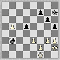 В ответ на 1.Kh2 черные вправе, конечно, разменять ферзей посредством 1...Qc7+, но окончание выглядит трудным для них. К его обсуждению имеет смысл вернуться после того, как будет получен ответ на главный вопрос: что белые приготовили на программное продвижение 1...a5!?.