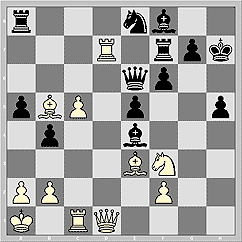 23.Be3 Kh7?! Этот "нормальный" ход, наверно, уже проигрывает. Нехорошо и 23...Nc7 24.Rd7 Re8 25.c6. На 23...Bc6 следует 24.Qb3+, и на 24...Kh7 неожиданно - 25.Ng5+! fxg5 26.hxg5 Qh3 27.f3 с неизбежным смертельным возвращением ладьи (Rd1-h1). Сильнее 24...Kh8, но белые сохраняют давление посредством 25.Qc2 Qf5 (25...e4 26.Nd4 Bd5 27.Nb5 Bc6 28.h5 g5 29.Nd6) 26.Qxf5 gxf5 27.h5 с последующим 28.Nh4 (поэтому-то они и завлекали черного короля на h8).