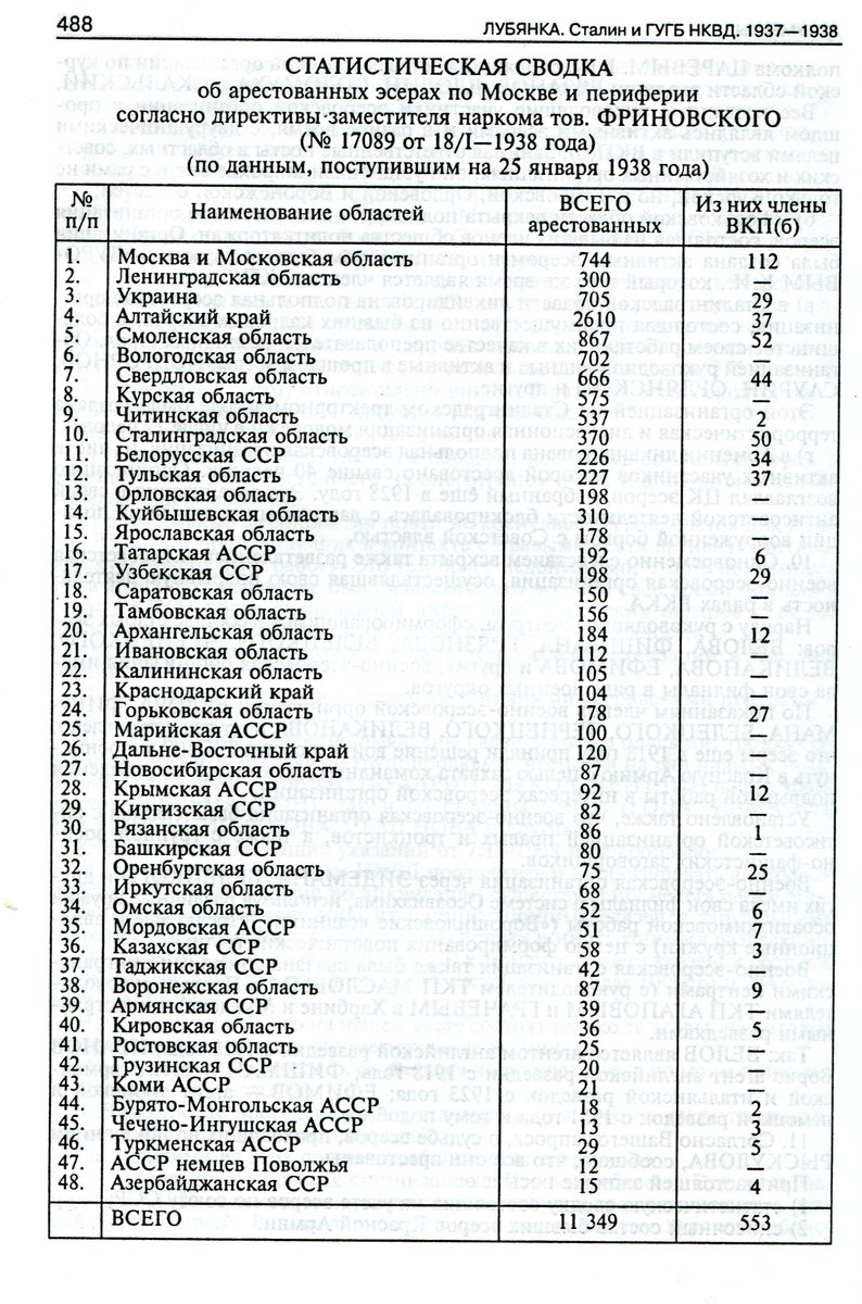 А вот какая, к примеру, сводка, подтверждающая, что Матвей Иванович, ныне покойный, отнюдь не «заливал» нам тогда с Демьянычем (и его уже давно нет) в «скворечнике», опубликована в книге «Лубянка. Сталин и Главное управление госбезопасности НКВД 1937-1938» (М., 2004 г.):