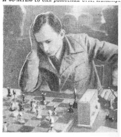 Керес и Смыслов. Фото из опубликованного в 6-м, последнем предвоенном номере «Шахмат в СССР» материала П.Романовского о матч-турнире шести, принесшем, как известно, победу Ботвиннику.