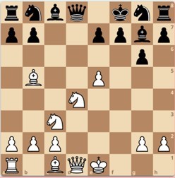 6…e6 7.Bb3 Be7 8.f4 0-0 9. f5 e5 (9...exf5 также возможно) 10.Nde2 Nc6 11.Be3 b5.