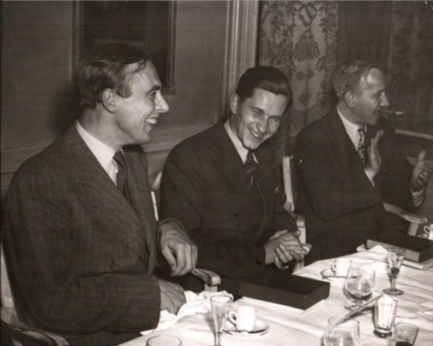 Один из закоперщиков англо-советской шахматной дружбы Хью Александер всегда юморил в компаниях с полпредами шахматного Эльдорадо, справа – Пауль Керес и Вячеслав Рагозин